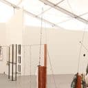 Plywood, sappeli veneer, cotton rope, wood beads, savonnette seeds, cotton fabric, carbon rod